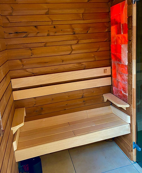 Ławy sauny zbudowano z Afrykańskiego drewna Abachi.